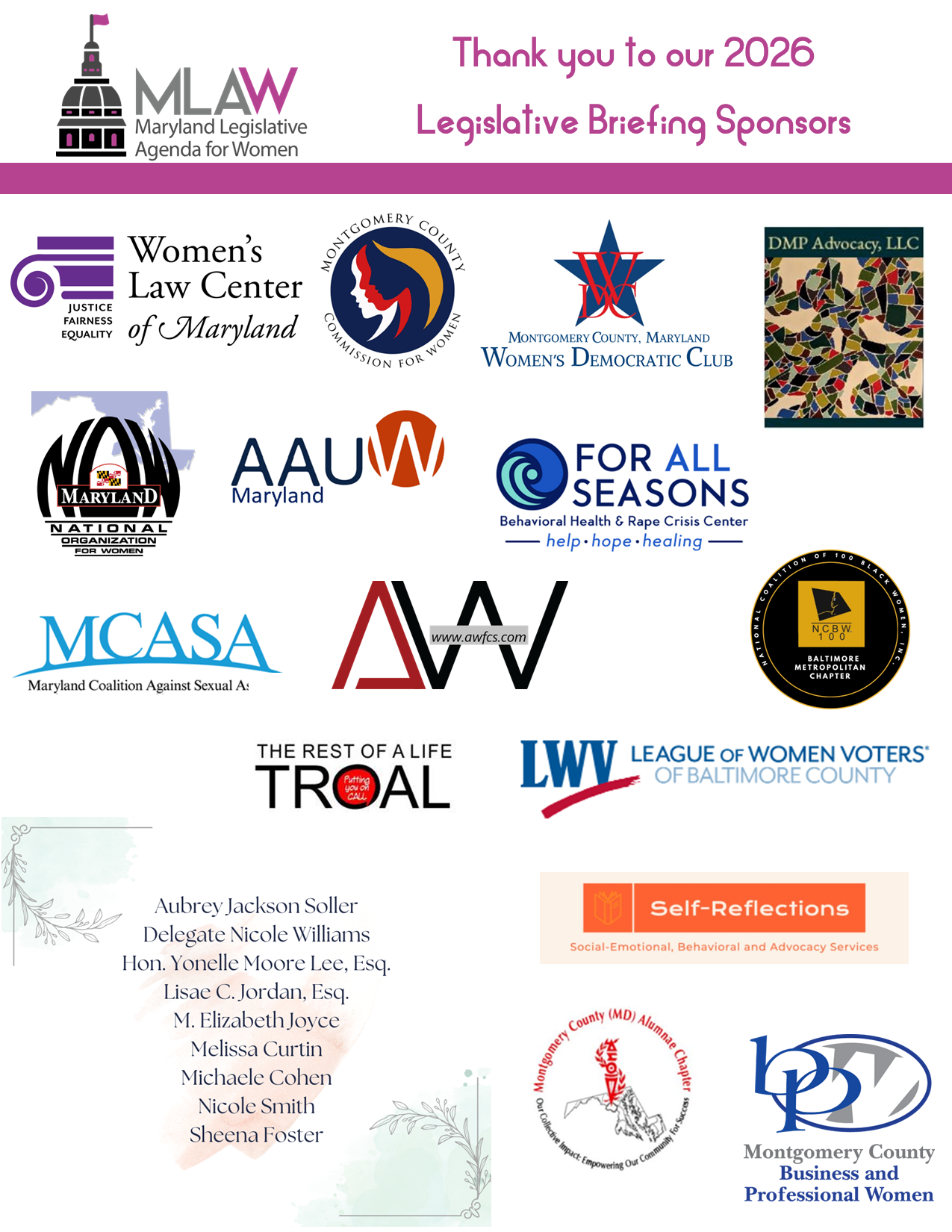 MLAW is funded exclusively through public support and your sponsorship helps make our advocacy efforts in Annapolis possible. To become a sponsor, click here.